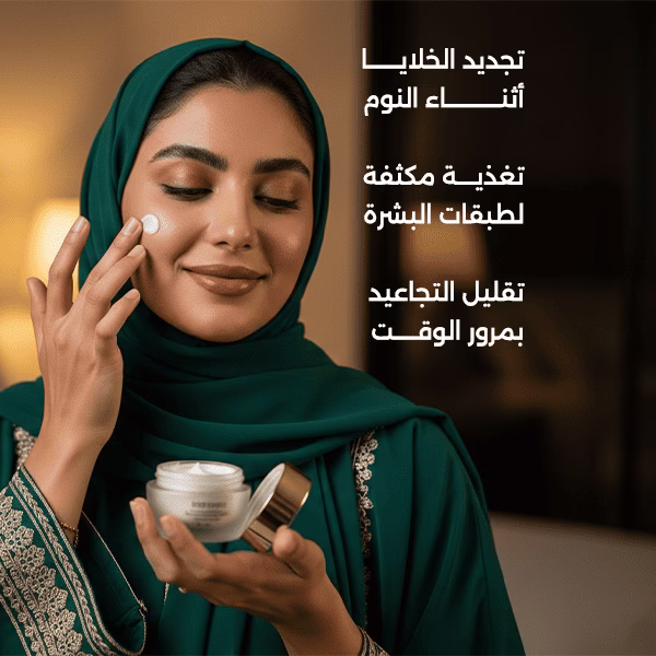 لحل المثالي لبشرة ناعمة ومشرقة كل صباح. بفضل تركيبته الغنية، يعمل هذا الكريم على تغذية البشرة بعمق أثناء النوم، مع المساعدة في تقليل مظهر الخطوط الدقيقة والتجاعيد. كما يمنح ترطيبا مكثفا يدعم مرونة البشرة ويعزز إشراقتها الطبيعية. مع كل استخدام، تستعيد بشرتك حيويتها ونضارتها لتبدو أكثر شبابا وصحة.