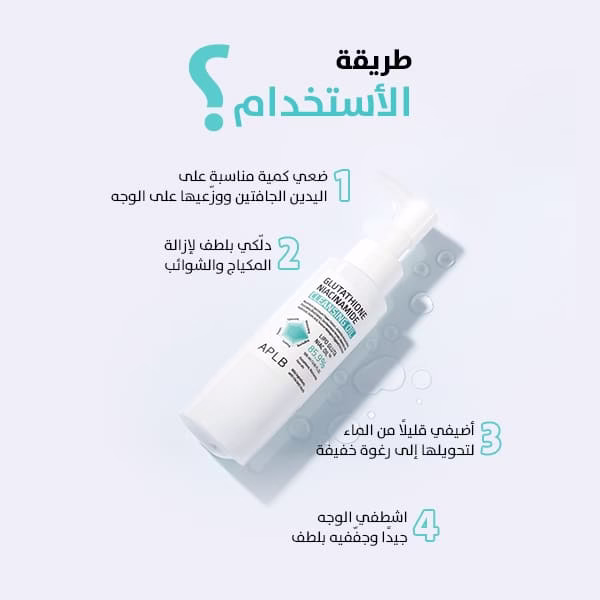 غسول زيتي بالجلوتاثيون والنياسيناميد ينظف البشرة بلطف ويزيل المكياج والشوائب والزيوت الزائدة دون أن يسبب جفافًا. يساعد على تفتيح البشرة وتقليل مظهر البقع الداكنة، كما ينعش البشرة الباهتة ويتركها ناعمة ومشرقة. مناسب لجميع أنواع البشرة.