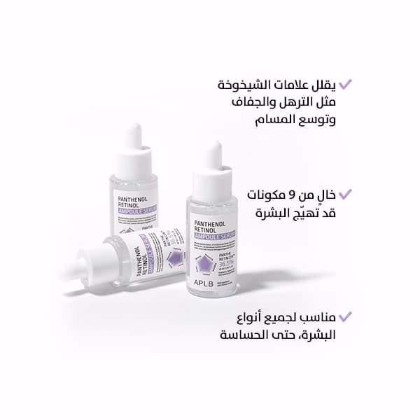 الريتينول (فيتامين A): يقلل من التجاعيد والخطوط الدقيقة، يعزز تجدد الخلايا، ويحسن مرونة البشرة.